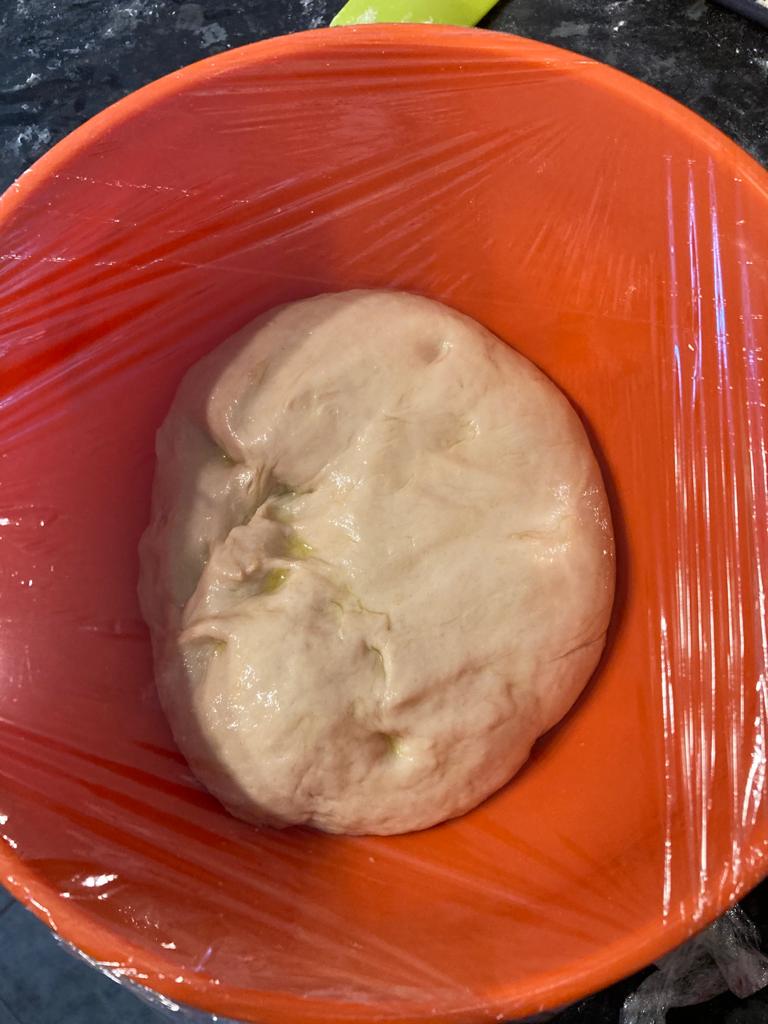 I enjoyed pushing back the dough after it’s first prove. It was delicious with chocolate spread!